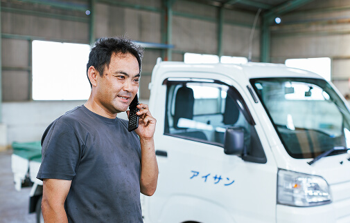 海苔の収穫・加工をメインにした漁業関係の機械の整備・修理業務を担当する。自分の手で船外機をメンテナンスした船が再び海へ出ていく瞬間にやりがいを感じている。