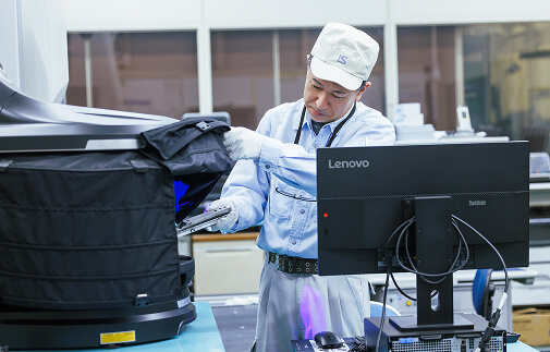 製品検査を中心に、注文から出荷まで品質の確保に関わっています。測定方法の検討、治具の手配、試作品の合否判定、外観・性能検査など幅広く担当。近年では非接触測定器を導入し、レーザーで3D形状を読み取り、データと照合する新しい検査方法にも力を入れています。