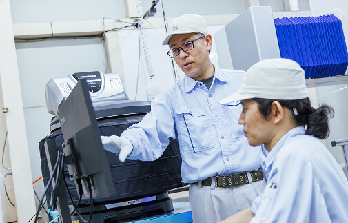 部署間の壁が低く、自由にコミュニケーションがとれる社風が魅力です。品質管理室にも営業スタッフが気軽に出入りし、お客様からの声や製品に関する情報を共有できます。ざっくばらんな会話から新たなアイデアが生まれることも多いんですよ。